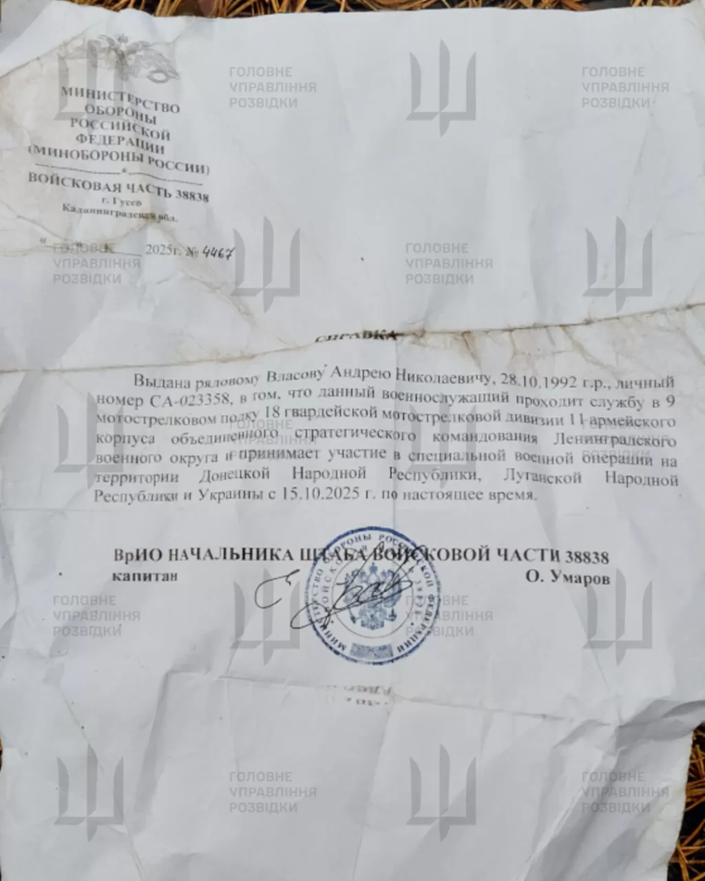 Во время боев на одном из направлений украинские военные ликвидировали россиянина Андрея Власова 1992 года рождения, который служил в составе 9-го мотострелкового полка 18-й гвардейской мотострелковой дивизии 11-го армейского корпуса ВС РФ.