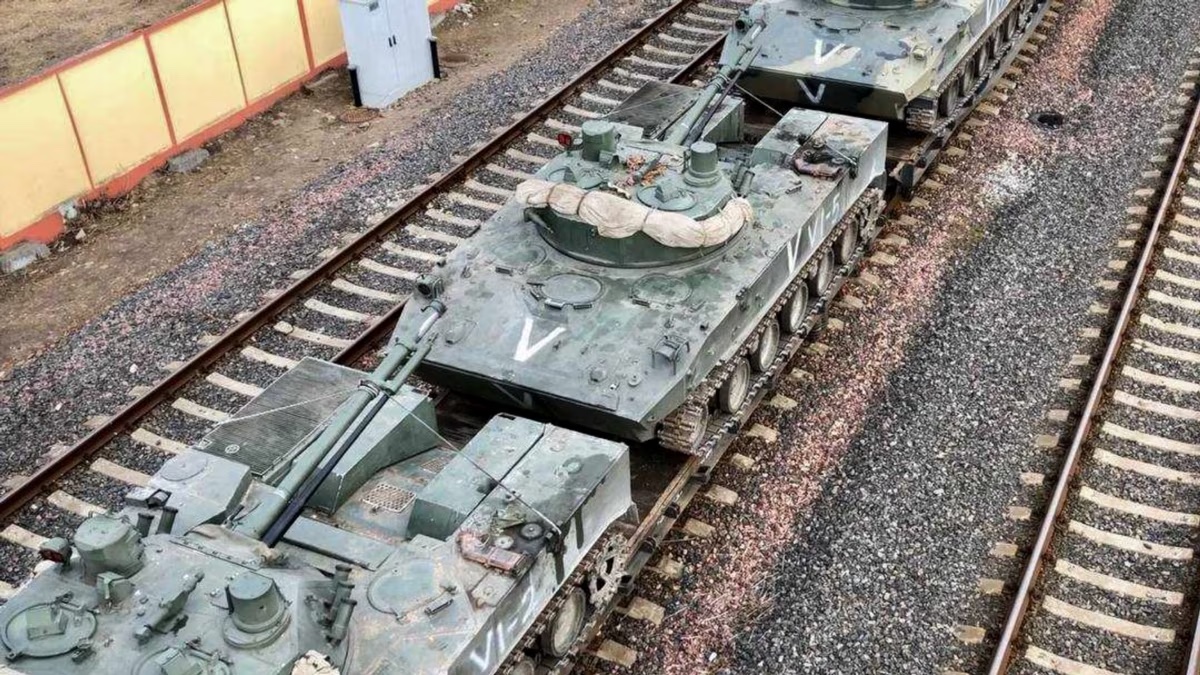 С 25 февраля из Беларуси на оккупированную Россией часть украинского Донбасса отправили пять эшелонов с российскими военными и техникой.