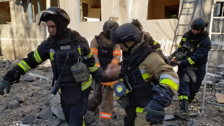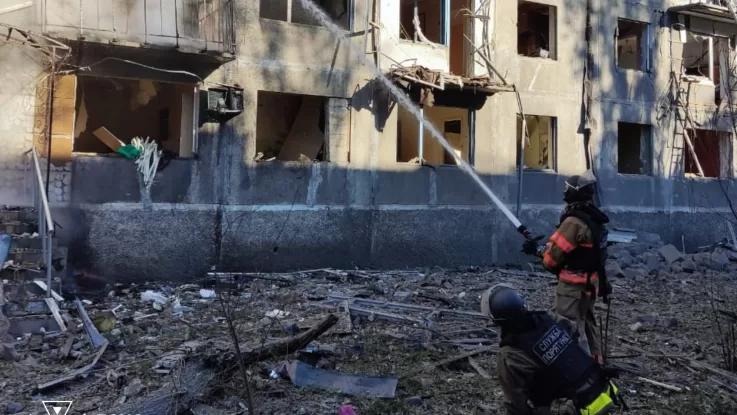 Спасатели ликвидировали три пожара, а также локализовали возгорание в девятиэтажке на площади около 1000 квадратных метров. Однако тушение пришлось прекратить из-за повторных ударов по городу.