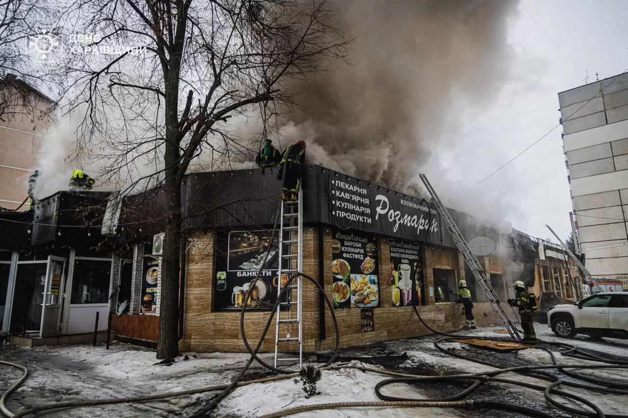 24 февраля, в 10:06, спасатели Харькова получили сообщение о пожаре в одноэтажном здании кафе в Слободском районе.