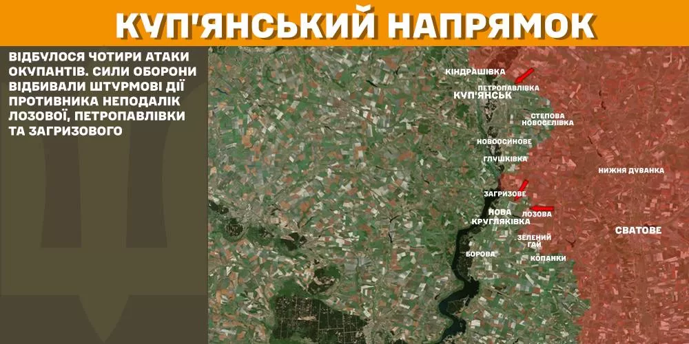 На Купянском направлении за прошедшие сутки произошло четыре атаки оккупантов. Силы обороны отражали штурмовые действия противника неподалеку Лозовой, Петропавловки и Загрызово.
