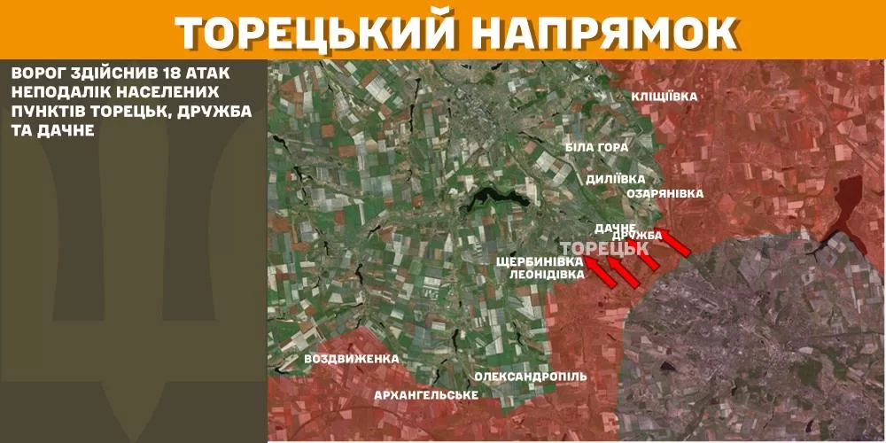 На Торецком направлении враг совершил 18 атак неподалеку населенных пунктов Торецк, Дружба и Дачное.