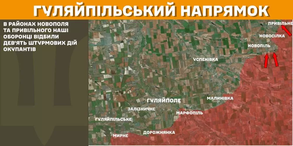 На Гуляйпольском направлении в районах Новополя и Привольного украинские защитники отбили девять штурмовых действий оккупантов.