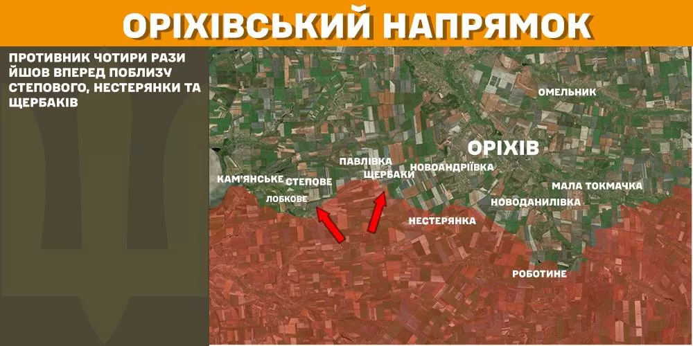 На Ореховском направлении противник четыре раза шел вперед вблизи Степного, Нестерянки и Щербаков.