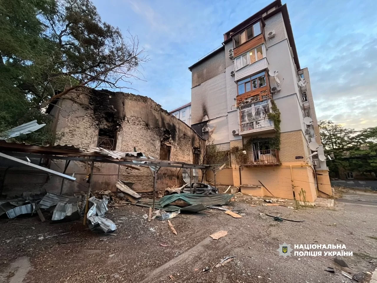 В Херсоне ночью FPV-дрон попал в жилой квартал, пострадал 43-летний мужчина. Когда на месте работала следственно-оперативная группа полиции, россияне во второй раз атаковали дронами – ранение получила 23-летняя полицейская.
