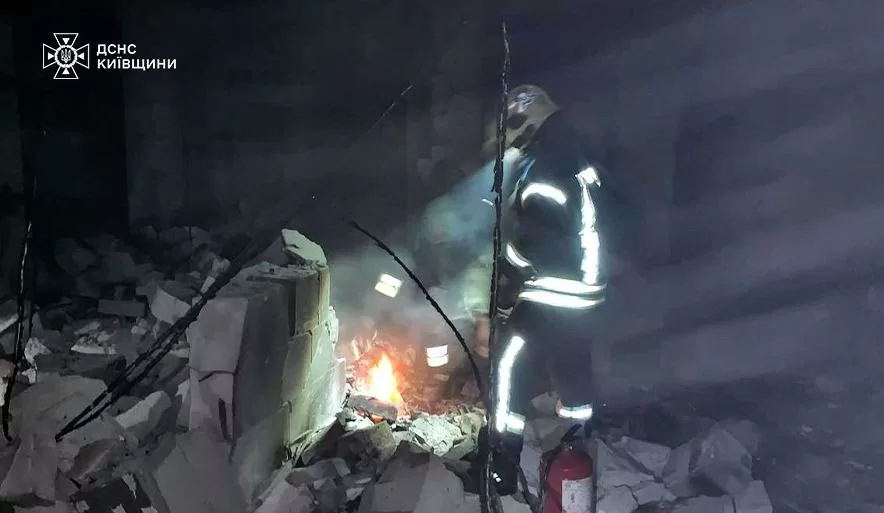 Ночью 24 февраля в Броварском районе Киевской области в результате атаки российских дронов произошел пожар в недостроенном многоэтажном доме.