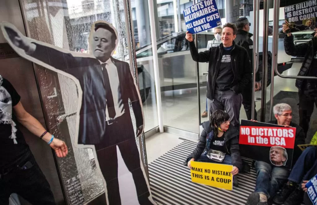 Как сообщает Reuters, акция в Нью-Йорке стала частью масштабных протестов, состоявшихся по всей стране. Демонстранты также собирались возле магазинов Tesla в Джексонвилле (Флорида), Тусоне (Аризона) и других городах.