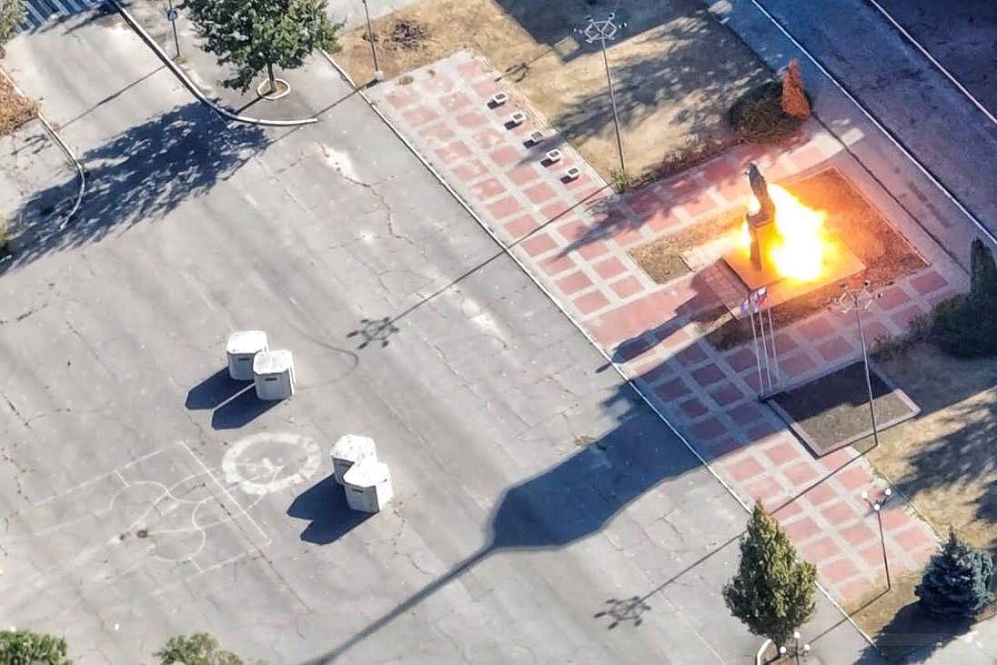 В оккупированной Новой Каховке подожгли памятник Ленину
