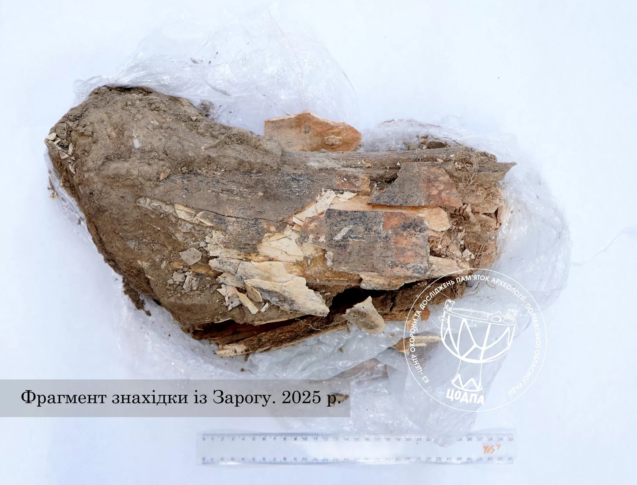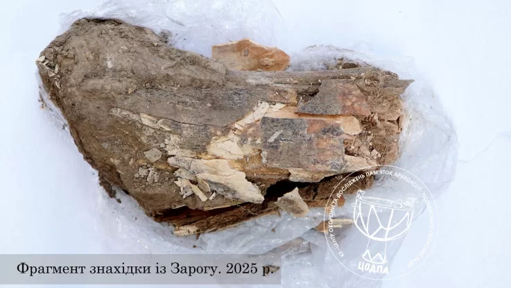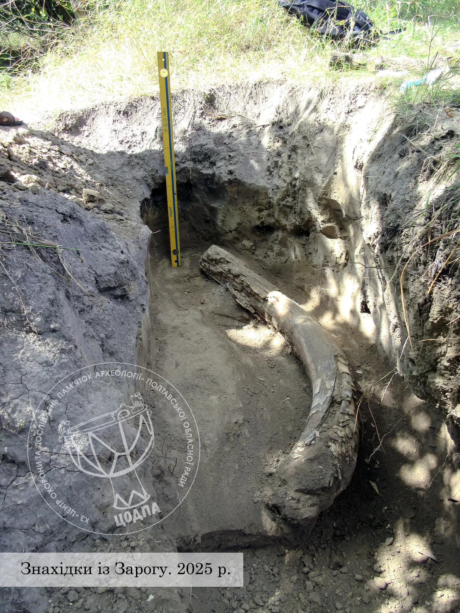 В Полтавской области, в селе Зарог Оржицкой громады, местная краеведка во время копания глины обнаружила фрагмент бивня мамонта.