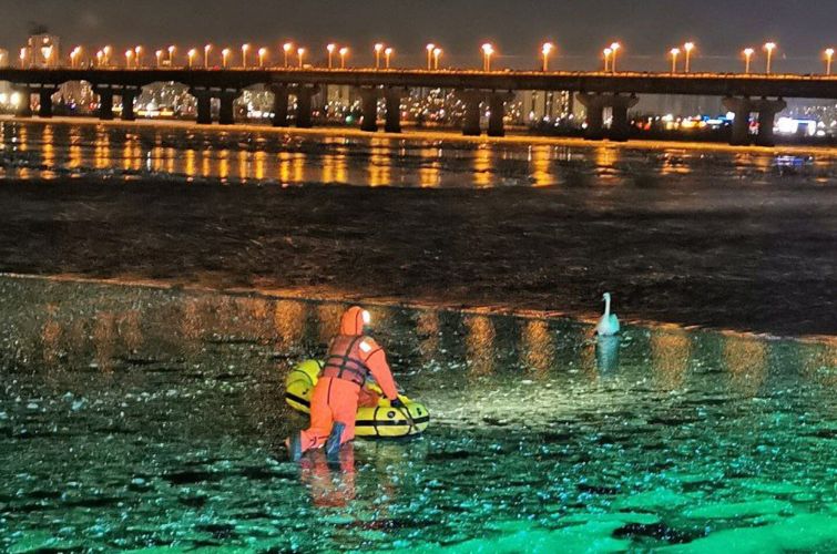 Как сообщили в организации Kyiv Animal Rescue Group, всего за 9 января им поступило 70 звонков, 10 из которых передали в работу спасателям. Они помогли трем лебедям и двум индокачкам.