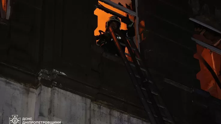 Про наслідки нічних ударів повідомили у ДСНС. У Дніпрі після влучання зайнялася адмінбудівля, також пошкоджені три багатоквартирні будинки та автомобілі.