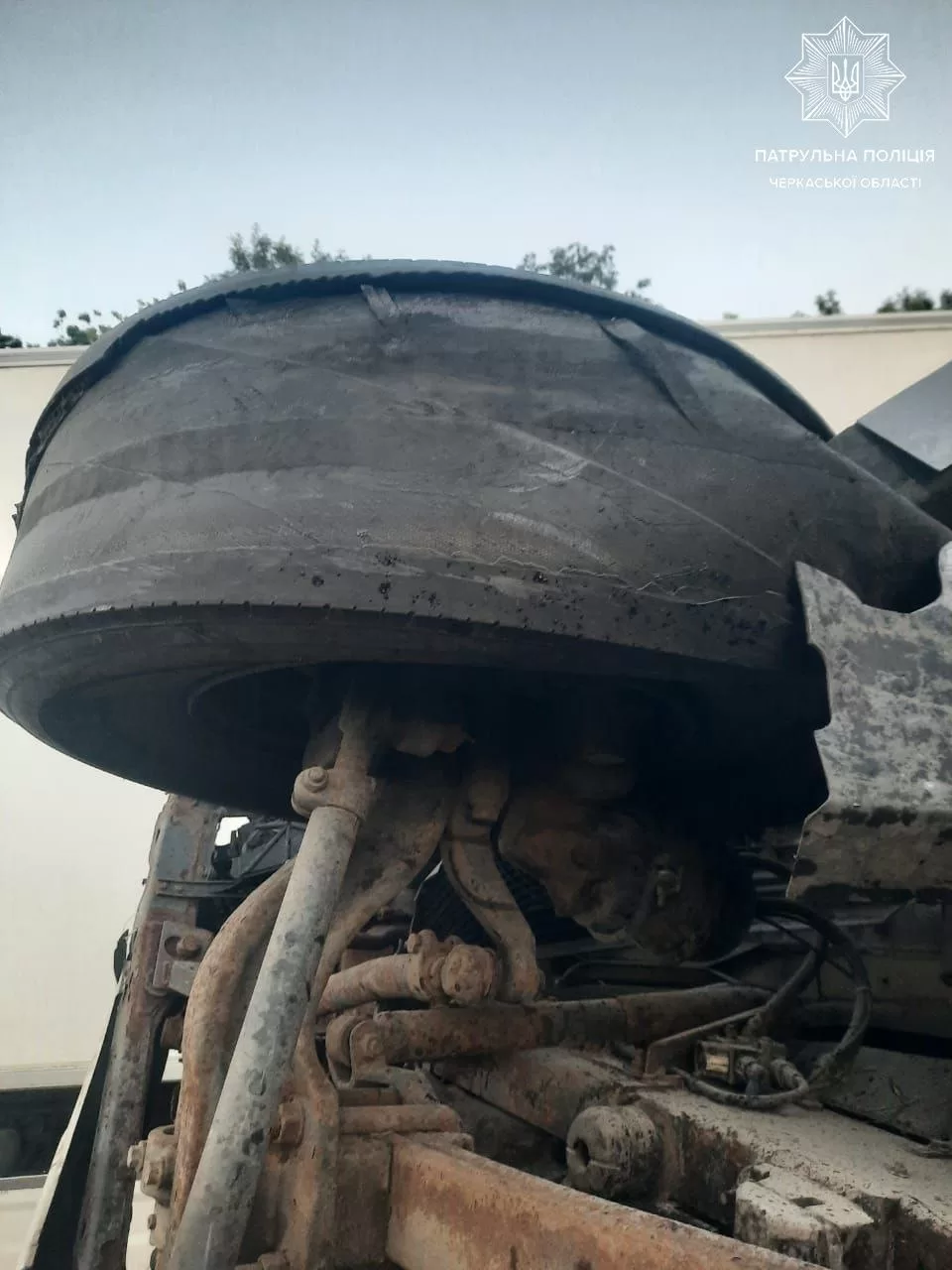 По данным патрульных, водитель тягача Volvo с полуприцепом перед началом движения не обеспечил технически исправное состояние автомобиля, в результате чего во время движения переднее левое колесо грузовика разорвалось.