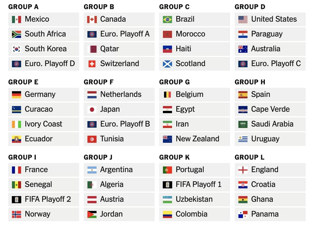 В плей-офф чемпионата мира-2026 выйдут по топ-2 каждой группы, а также восемь лучших команд, финишировавших третьими.