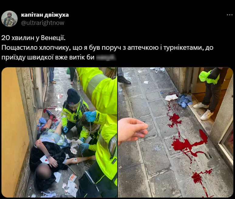 Во время своего отпуска в Венеции украинский военный спас от смерти мужчину, который истекал кровью от ножевых ранений. Украинец оказал пострадавшему помощь до прибытия медиков.