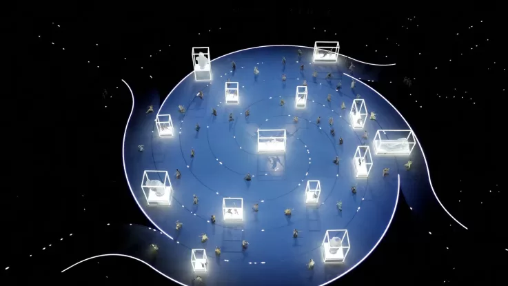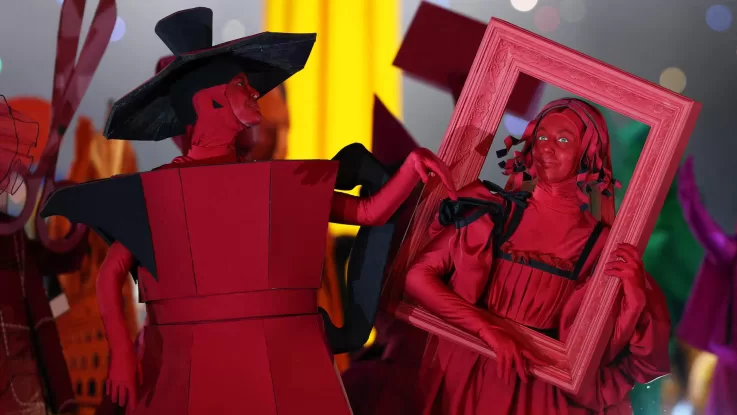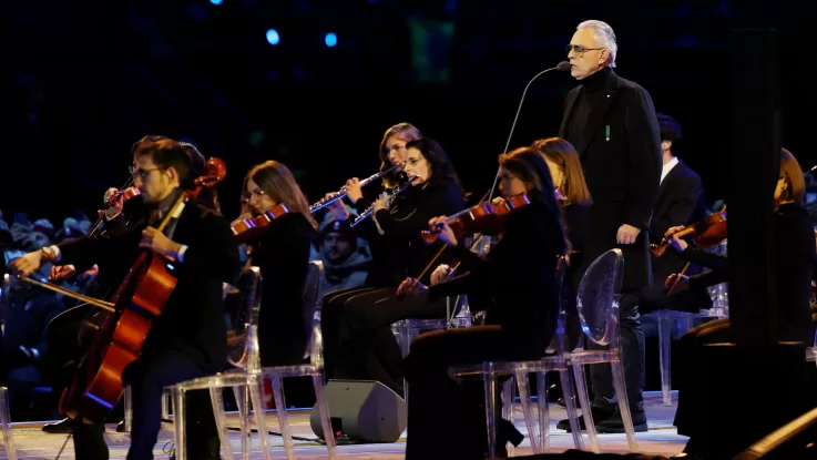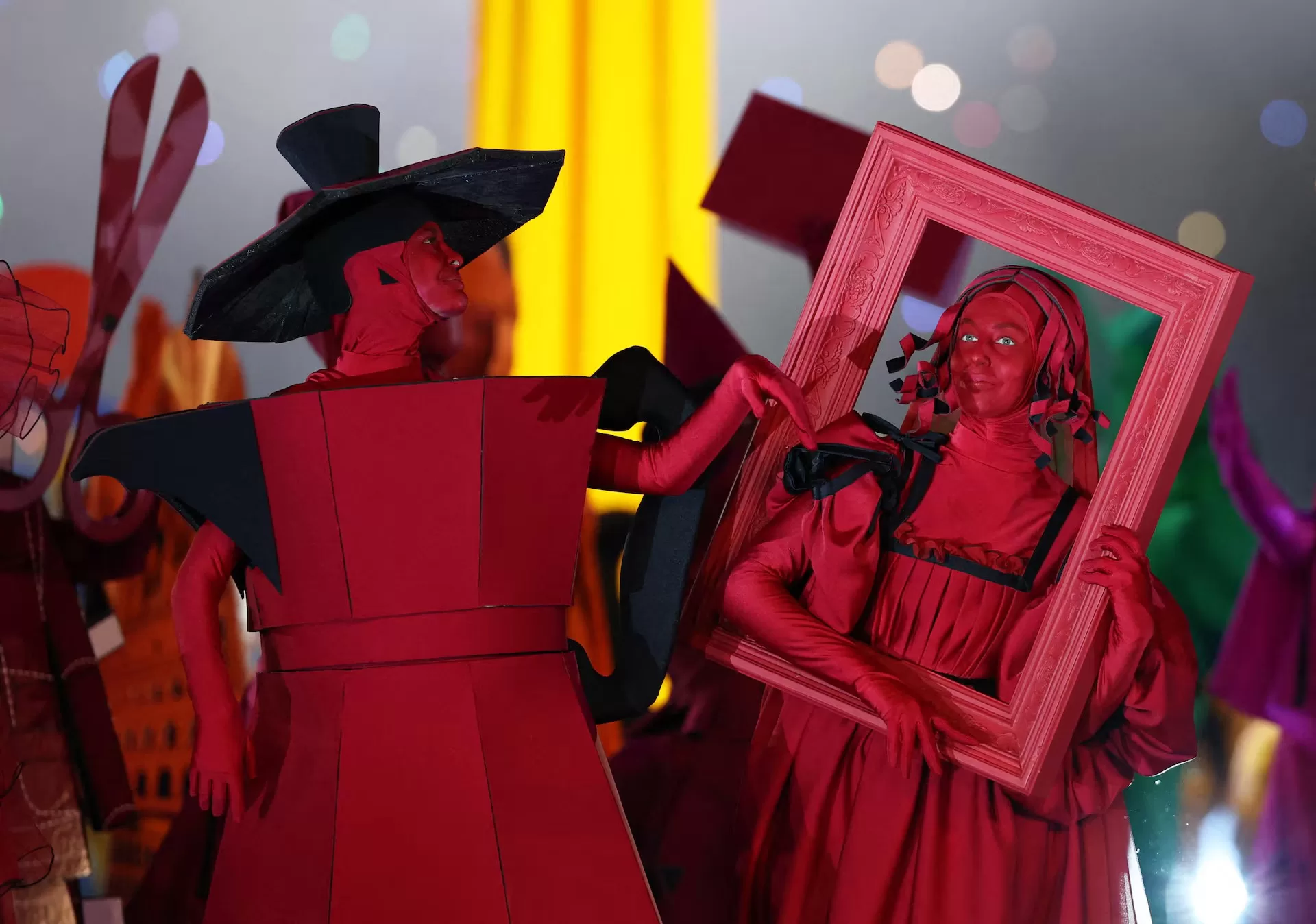 Затем на сцене появились артисты с большими головами композиторов Джузеппе Верди, Джакомо Пуччини и Джоаккино Россини. На шоу выступила американская певица Мэрайя Кэри, она исполнила знаменитую итальянскую песню 1958 года «Nel blu, dipinto di blu».