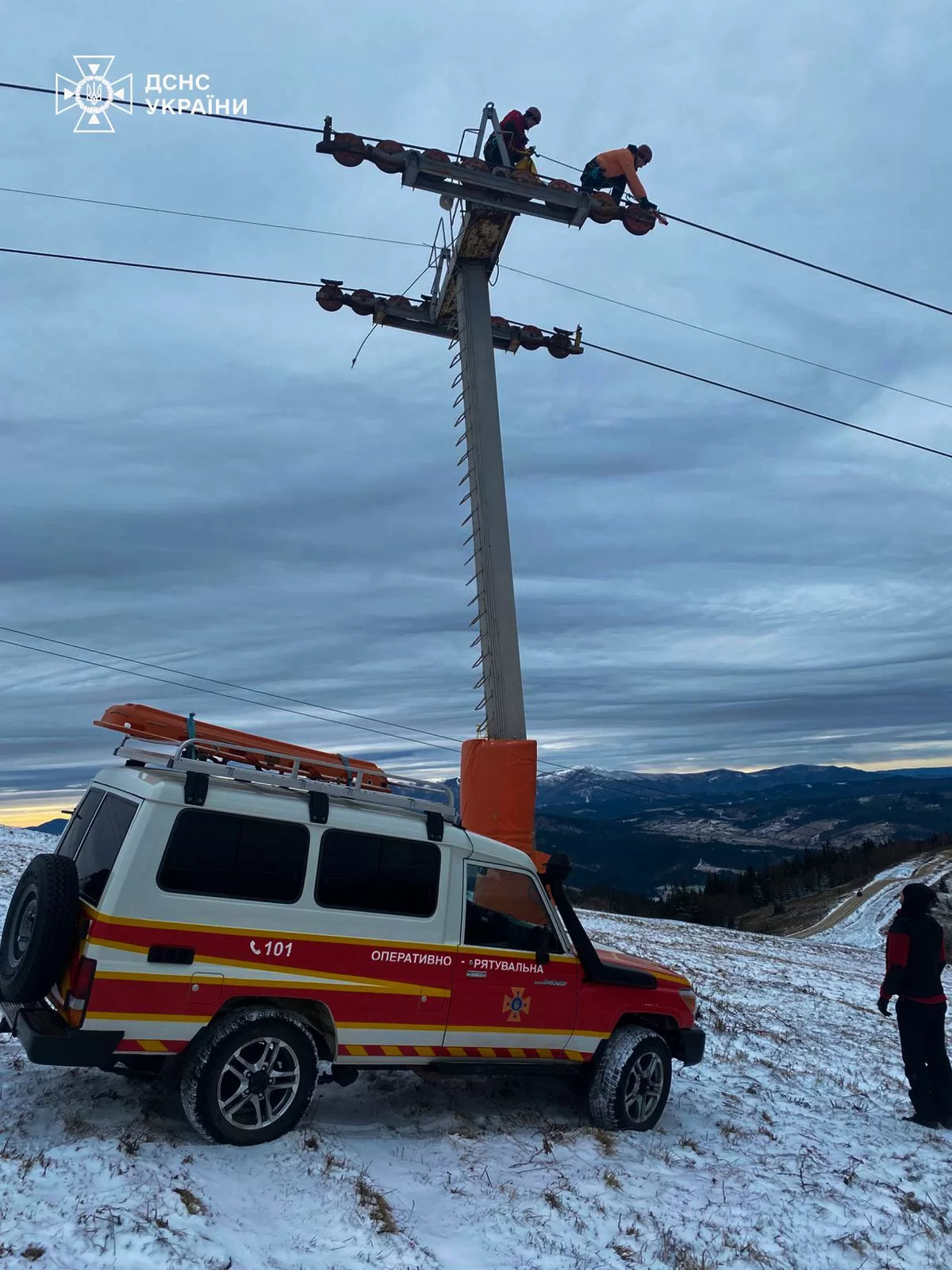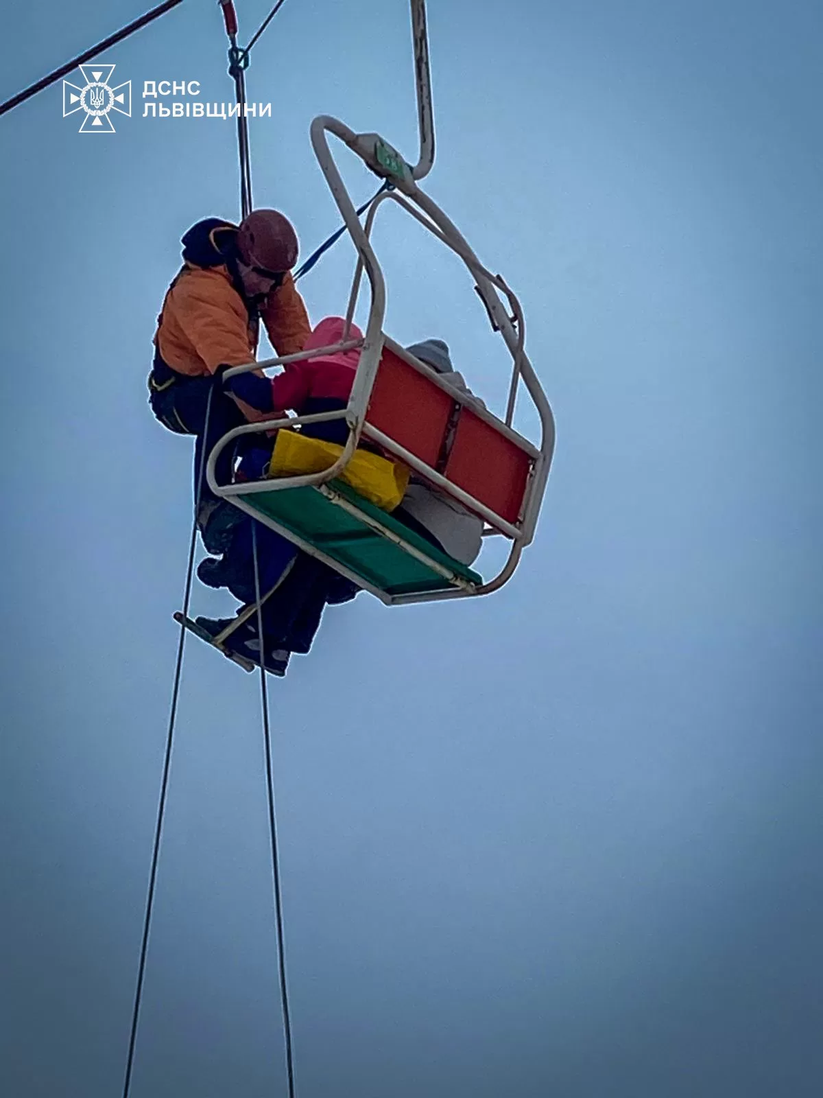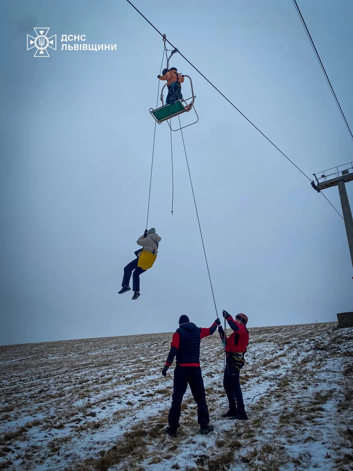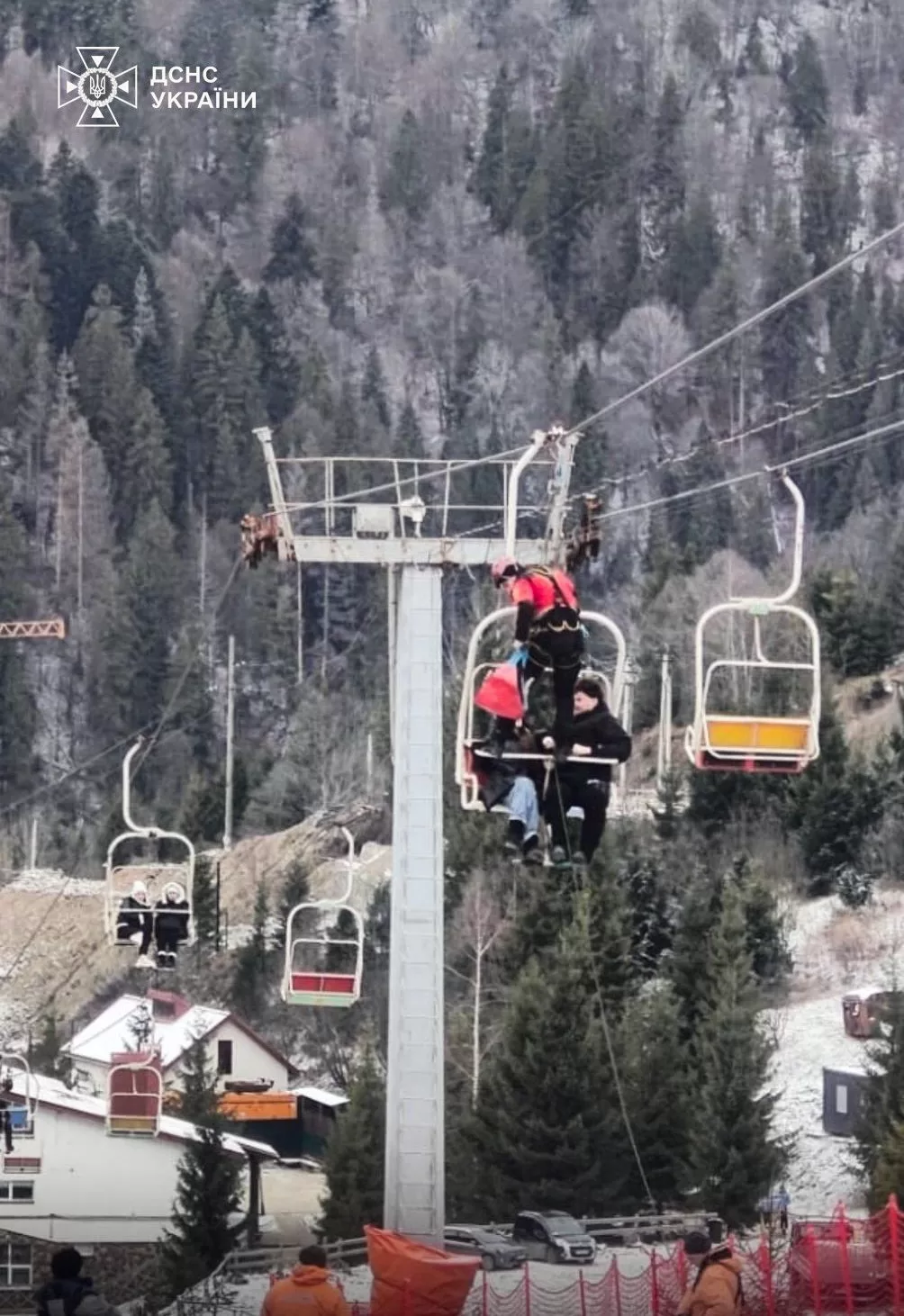Сегодня, 26 декабря, около 11:50, на горе Захар Беркут в поселке Волосянка Львовской области остановился кресельный подъемник, на котором находились люди. С канатной дороги туристов снимали спасатели.