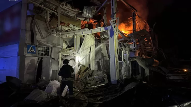 По его словам, в результате атаки частично разрушен супермаркет сети АТБ. На обнародованных фото видно значительные разрушения здания. По предварительным данным, жертв и пострадавших нет.