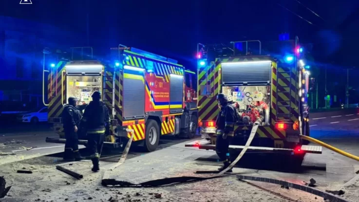 ГСЧС уточнила, что удар произошел около 23:00. В помещении магазина вспыхнул пожар на площади около 50 кв. м, который спасатели быстро ликвидировали. Также повреждены два автомобиля и соседние здания.