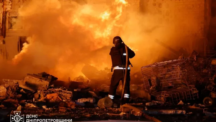 Массированный удар также пришелся на Днепропетровскую область. В Днепре и Павлограде повреждены инфраструктурные объекты, где возникли пожары. В самом Днепре загорелись частный дом и хозяйственная постройка. По предварительным данным, жертв и пострадавших нет. К ликвидации последствий привлечено более 100 спасателей и 40 единиц техники.