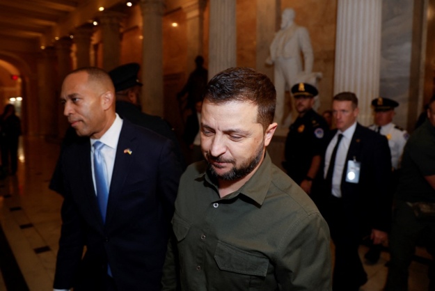 Зеленского в Капитолии, судя по опубликованным агентствами фотографиям, сопровождал лидер демократического меньшинства в Палате представителей Хаким Джеффрис.