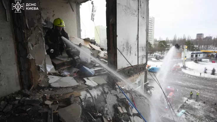 Основной мишенью атаки стала столица Украины. Зафиксированы попадания по энергетической и гражданской инфраструктуре Киева, повреждены жилые дома. Под завалами одного из них спасатели ищут человека. В части районов Киева и области отсутствует электроснабжение и отопление, продолжается ликвидация пожаров.
