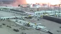 В городе Артезия (США) спасательные службы ликвидировали пожар после взрыва на нефтеперерабатывающем...