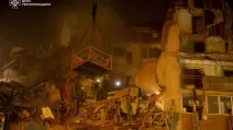 У Тернополі рятувальники продовжують працювати на місці зруйнованої російським ракетним ударом...