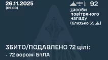 Уночі проти 26 листопада Росія атакувала Україну балістичними ракетами та 90 ударними дронами. Повітряні сили...