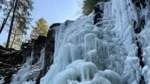 20-метровий Манявський водоспад в Івано-Франківській області повністю обледенів через сильні морози. На...