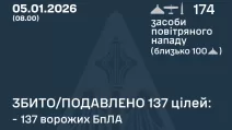 У ніч на 1 січня 2026 року, починаючи з 18:00 31 грудня 2025 року, росіяни запустили по Україні 205 ударних БпЛА Shahed,...