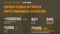 Станом на ранок 17 жовтня 2025 року загальні бойові втрати російських військ в Україні з початку...