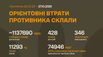 Станом на 27 жовтня 2025 року, за даними Генерального штабу Збройних сил України, загальні бойові втрати...